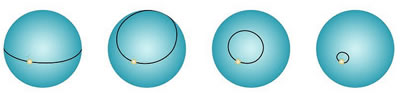 O círculo de dimensão 2 (em preto na figura) pode ser compactado até se tornar um ponto. A conjectura de Poincaré afirma que isso também vale para uma esfera de dimensão 3.
